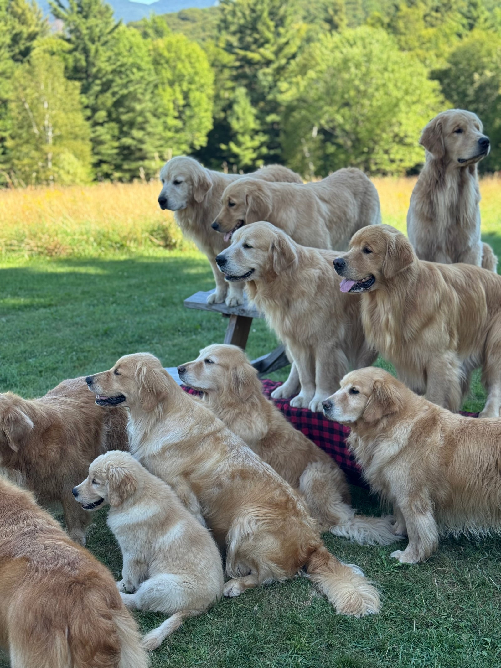 Goldens (and other dogs) are welcome to join us for the Golden Dog Farm General Tour (Bees and Maple Trees). They’ll also be joining one or both of the resident Goldens here who accompany the tours.